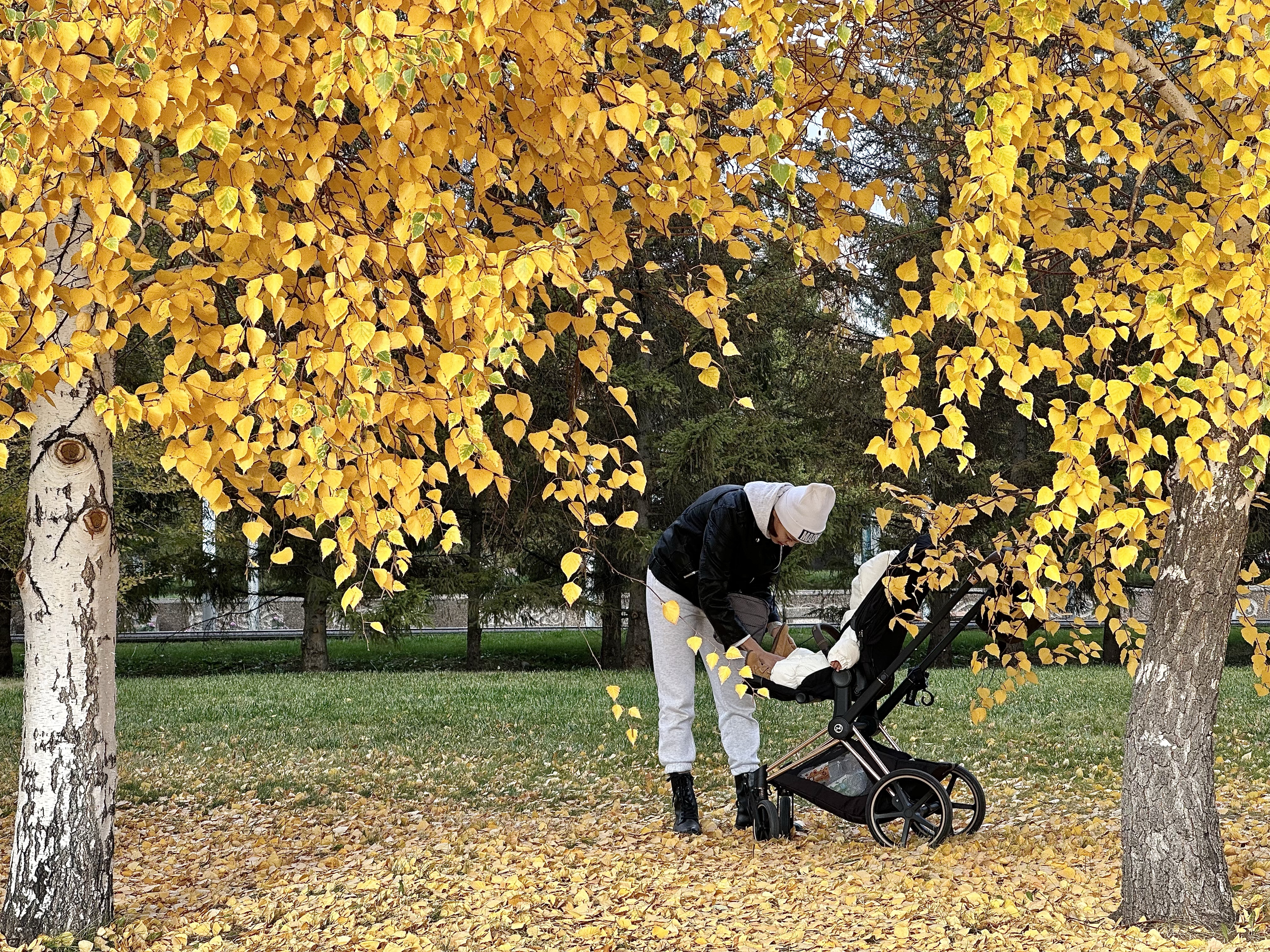 Người Astana cũng rất thích đi dạo bộ ở công viên, lâu lâu lại thấy các dì, các mẹ để con trong nôi rồi đẩy đi vòng vòng thành phố chơi, thong dong tận hưởng mùa thu vàng trong thành phố
