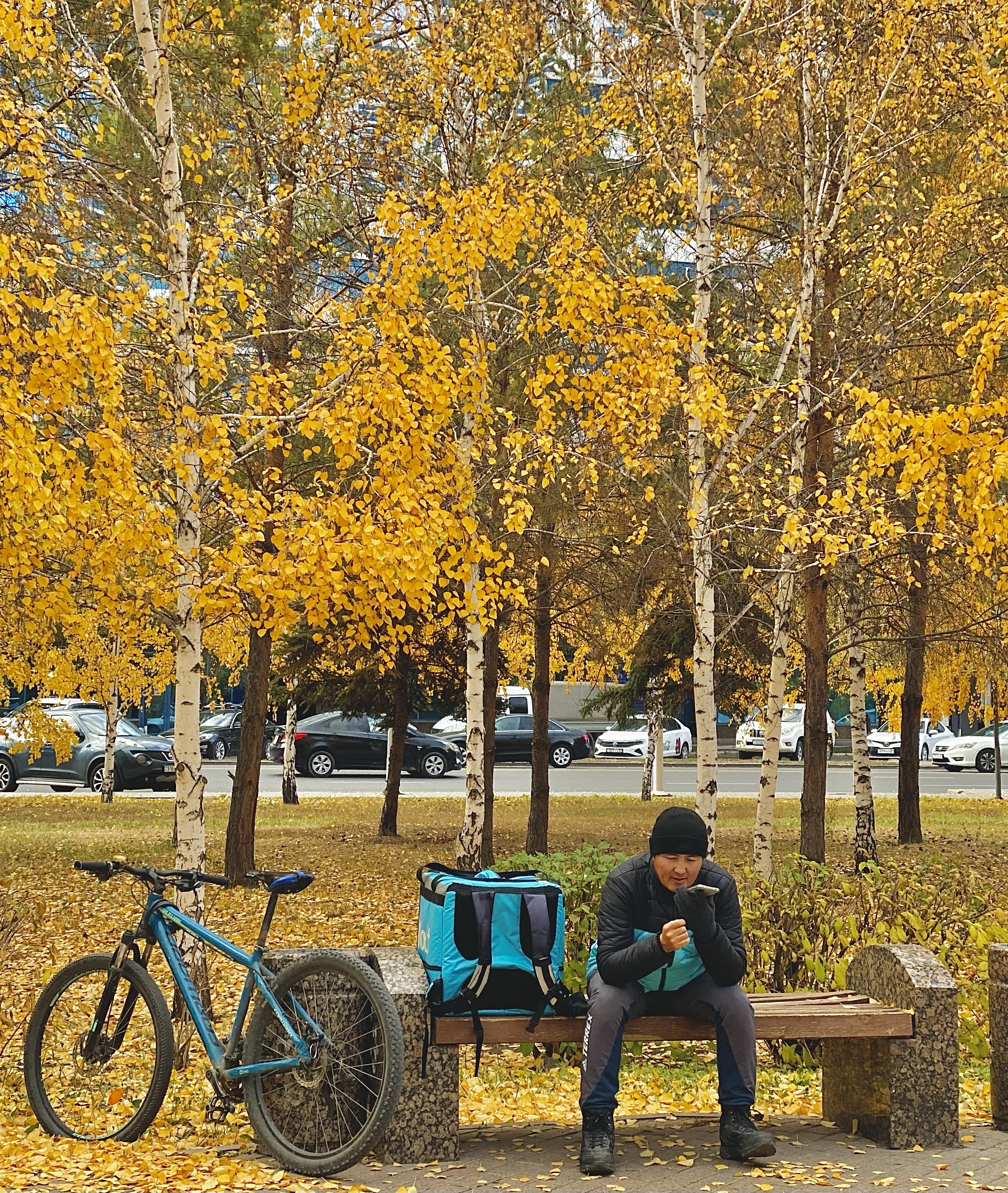 Ở Almaty có tới mấy chục cái công viên. Mà thu tới thì công viên nào cũng đẹp, cũng lãng mạn và nhẹ nhàng. Chỉ cần đi ra đây chọn một gốc cây, băng ghế, ngồi đó ngắm đường phố, ngắm người đi tập thể dục cũng đủ thích