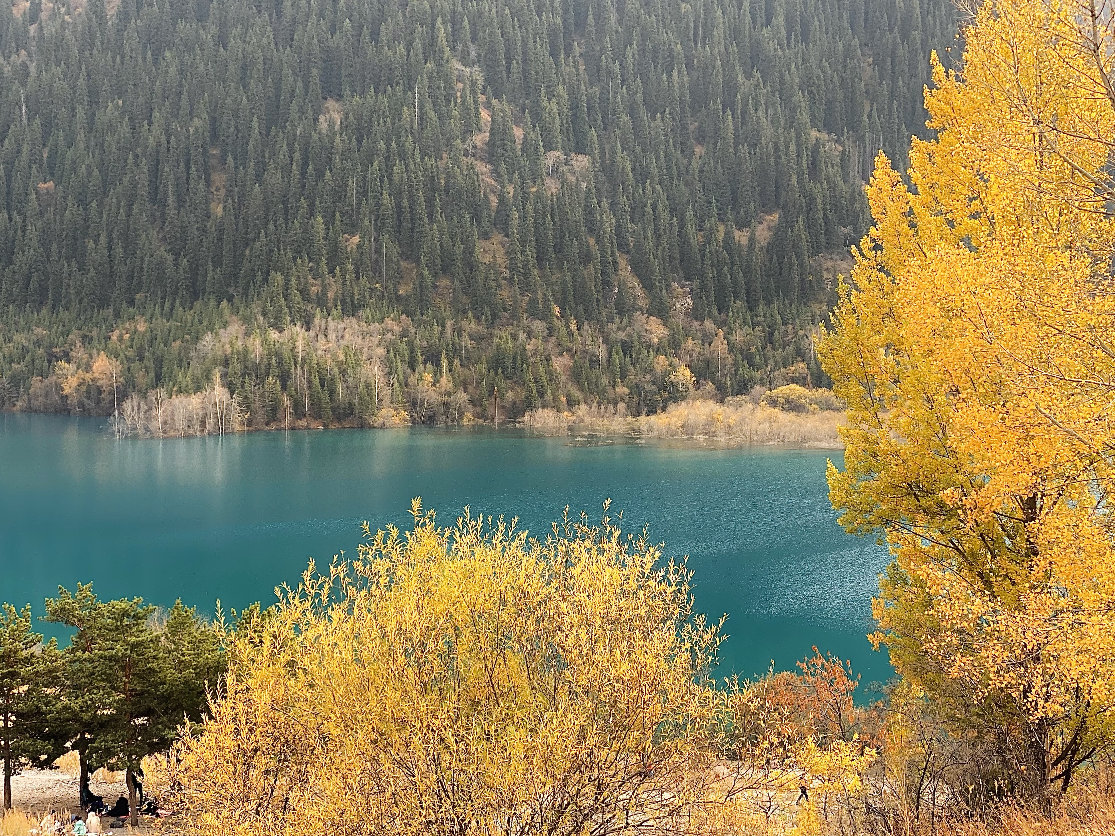 Tỷ lệ lá đỏ ở vùng này theo mình thấy là nhiều nhất ở Kazakhstan rồi. Cách Almaty khoảng 70km, hồ Issyk có thể dễ dàng đi về trong nửa ngày. Nước hồ màu xanh trong, khá giống màu nước ở Cửu Trại Câu Trung Quốc.