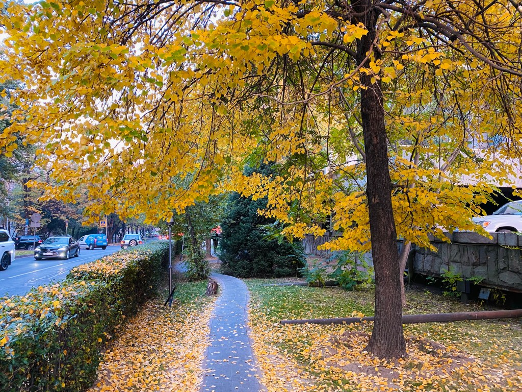 Dọc đường cũng có mấy cái ghế ngồi để thư giãn. Tuy nhiên thì lúc bọn mình đi trời khá lạnh tầm 6 độ nên là ngồi không nổi, chỉ có thể đi dạo và ngắm nhìn hàng cây này. Với các bạn chưa từng thấy lá phong thì tới đây chắc hẳn sẽ rụng tim xao xuyến nhiều lần lắm