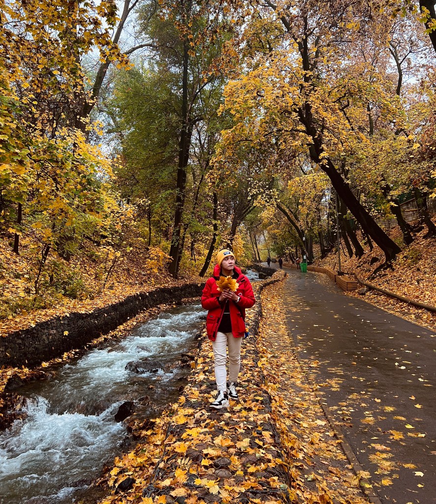 Người ta cũng hay đi dạo bộ, thể dục, dắt chó đi dạo dọc theo con đường này. Khi mùa thu lên đỉnh, cả con đường nhuộm vàng hết, cảm giác nghe tiếng suối chảy, đi bộ ngắm mùa thu thật sự thú vị và refresh. Trên con đường này cũng có WC free cho những bạn cần giải quyết. Cuối đường là cái hồ với mấy con vịt trời bơi xung quanh tung tăng. Nhìn chung là rất rất thích và mình đánh giá đây là điểm đón mùa thu đẹp nhất Almaty