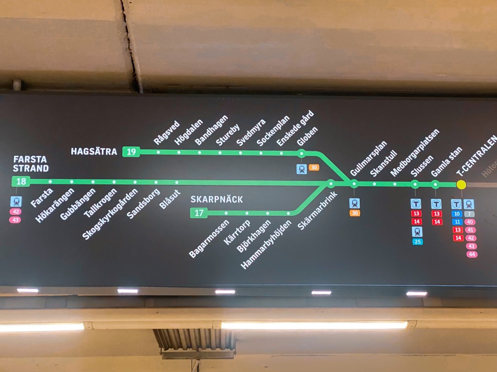Thành phố Stockholm có rất nhiều line tàu điện, phải tới 30 Line tàu điện. Nhưng thường mình thấy chỉ dùng các line 14,17,18,19 và Tram Line 7 là nhiều, vì hầu hết các điểm tham quan nằm ở các Line Tàu này.