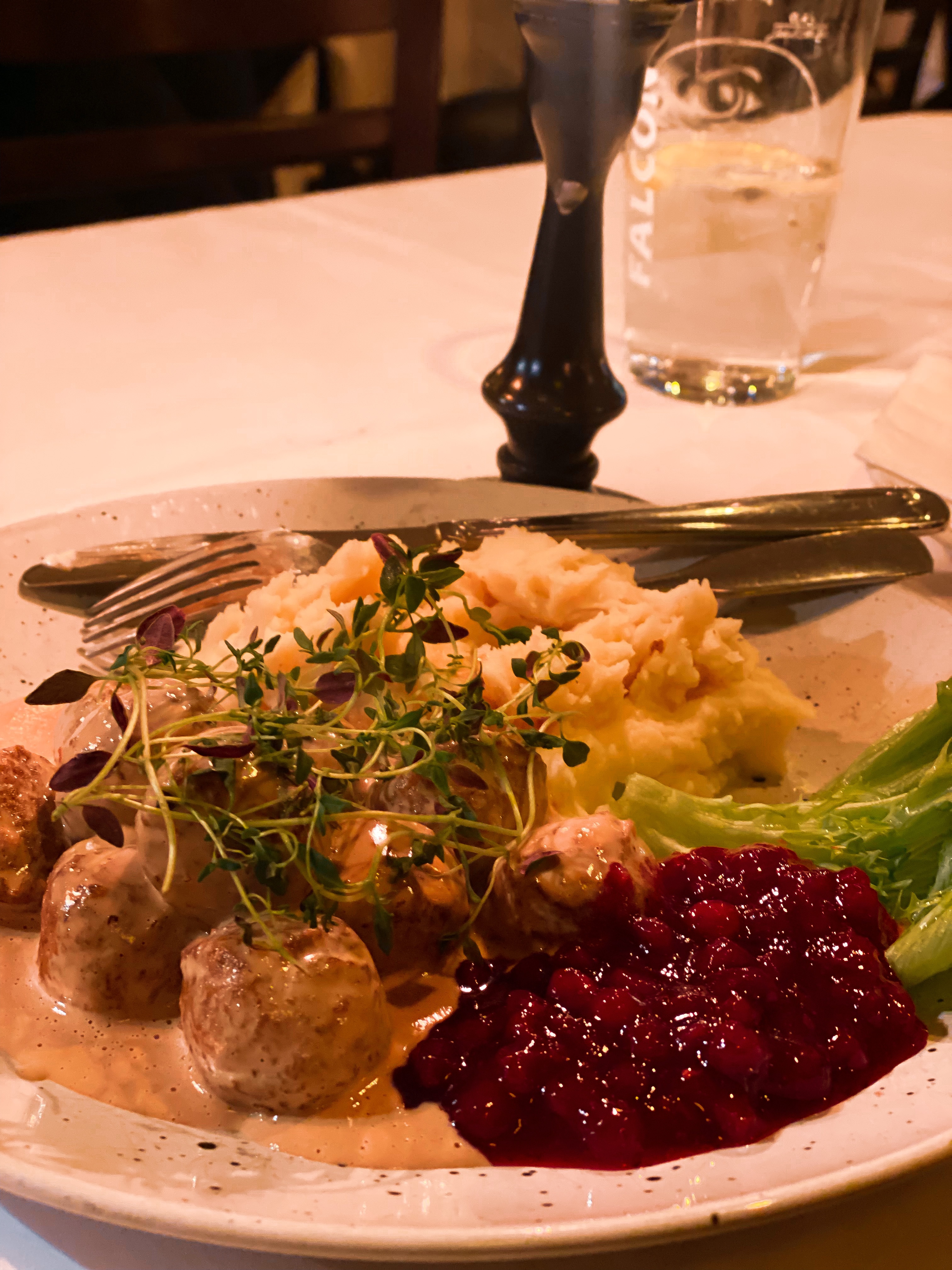 Quán này thì bạn phục vụ rất rất thân thiện luôn nên mình rất thích. Giá thì cũng không đắt lắm. Meatball ở đây ngon, Toast Kagen – bánh mì salad tôm cũng ngon nốt luôn. Khoảng 275 SEK (Khoảng 700k VND) cho 1 phần ăn 1 Starter, 1 Main và 1 nước Coca Cola