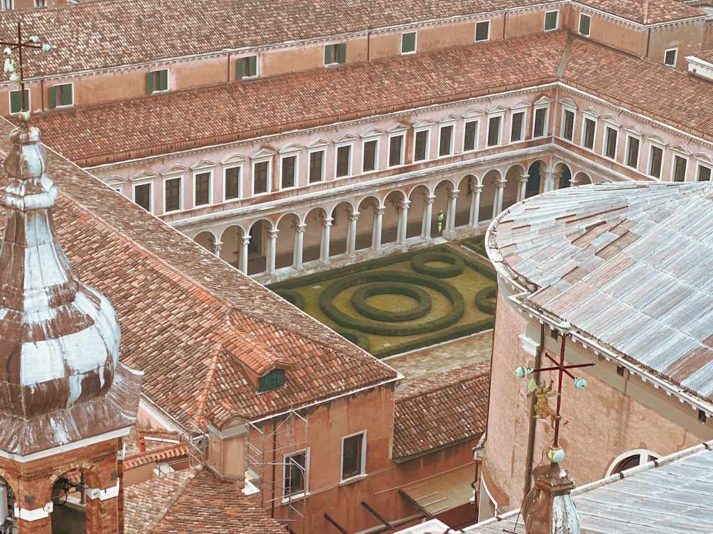 Looking at the watch, I found out that it’s almost 5 p.m. and the Palazzo Contarini del Bovolo might close soon if I am not quick. I rushed to the tower, just to realize that I was the last person to be admitted for an entry before it closed the door behind other tourists. It cost me 8 euros to visit, quite pricey, but as I would not have another chance to visit on the last day, I paid, with some thoughts of whether I was crazy or not just to stand on the top for 10 minutes or so. It was somehow weird standing there with wide views of houses’ roofs. But as all of the roofs are made of bricks with an orange/ruby shade, it’s satisfying and cool.