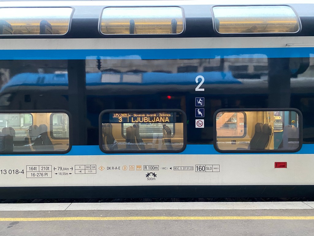 Sau hơn 1 tiếng, con tàu “địa phương” của Slovenia dần tiến đến ga. Tuy gọi là tàu địa phương nhưng thoạt nhìn vẫn mới hơn đoàn tàu Thống Nhất của Việt Nam mình. Chặng này chỉ mất 20 phút và các loại tàu này không yêu cầu đặt số ghế ngồi nên mình có thể tùy ý ngồi tại nơi mình thích, miễn là ghế còn trống – Trích lời một bạn gái Slovenia đã nhiệt tình hướng dẫn khi mình đang loay hoay không biết có nên ngồi ở khoang số 3 hay không.