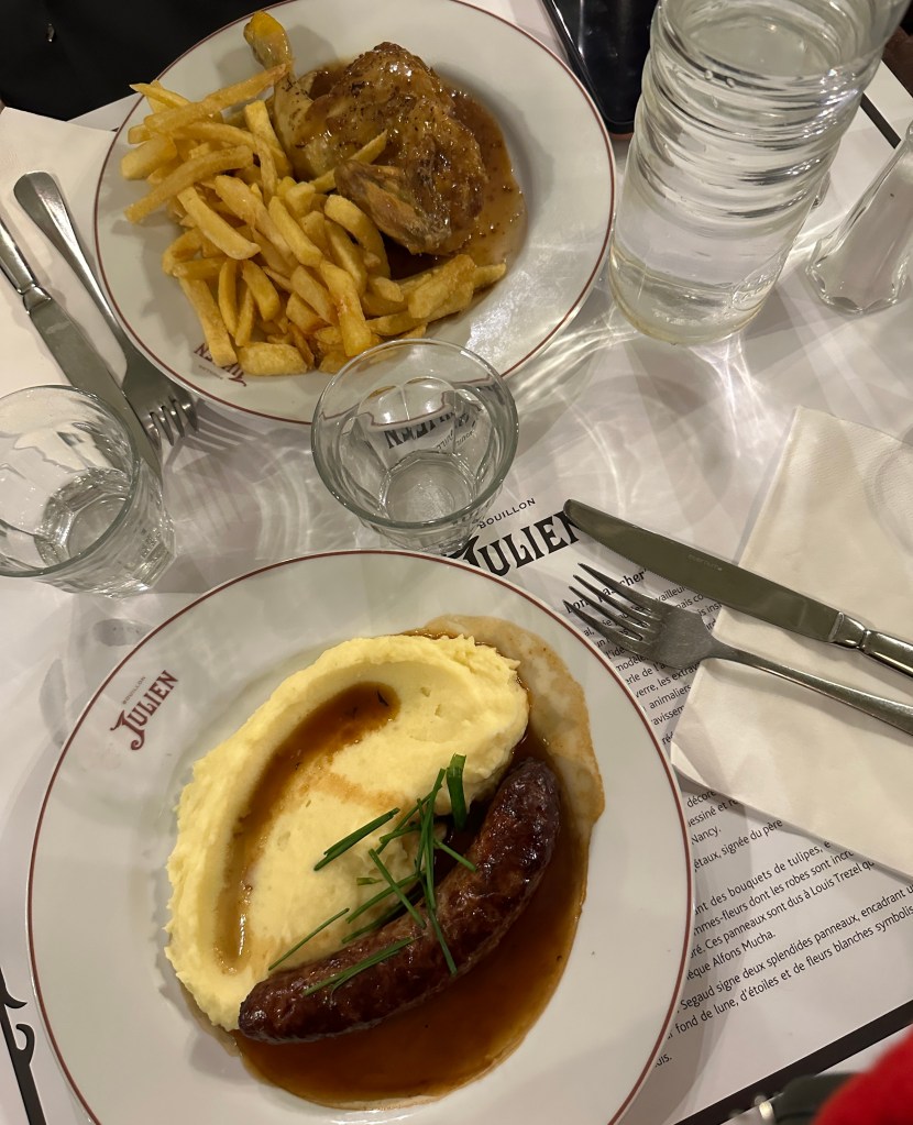 Ở Pháp có rất nhiều quán ăn tên Bouillon kiểu này. Có cái theo chuỗi, có cái không. Đa phần là rất đông, nên đi buổi xế xế cho đỡ đông chứ ngay giờ ăn trưa hay ăn tối là xếp hàng đợi mòn mỏi. 2 Cái Bouillon mà mình đã ăn qua là Bouillon Julien và Bouillon Republiqué
