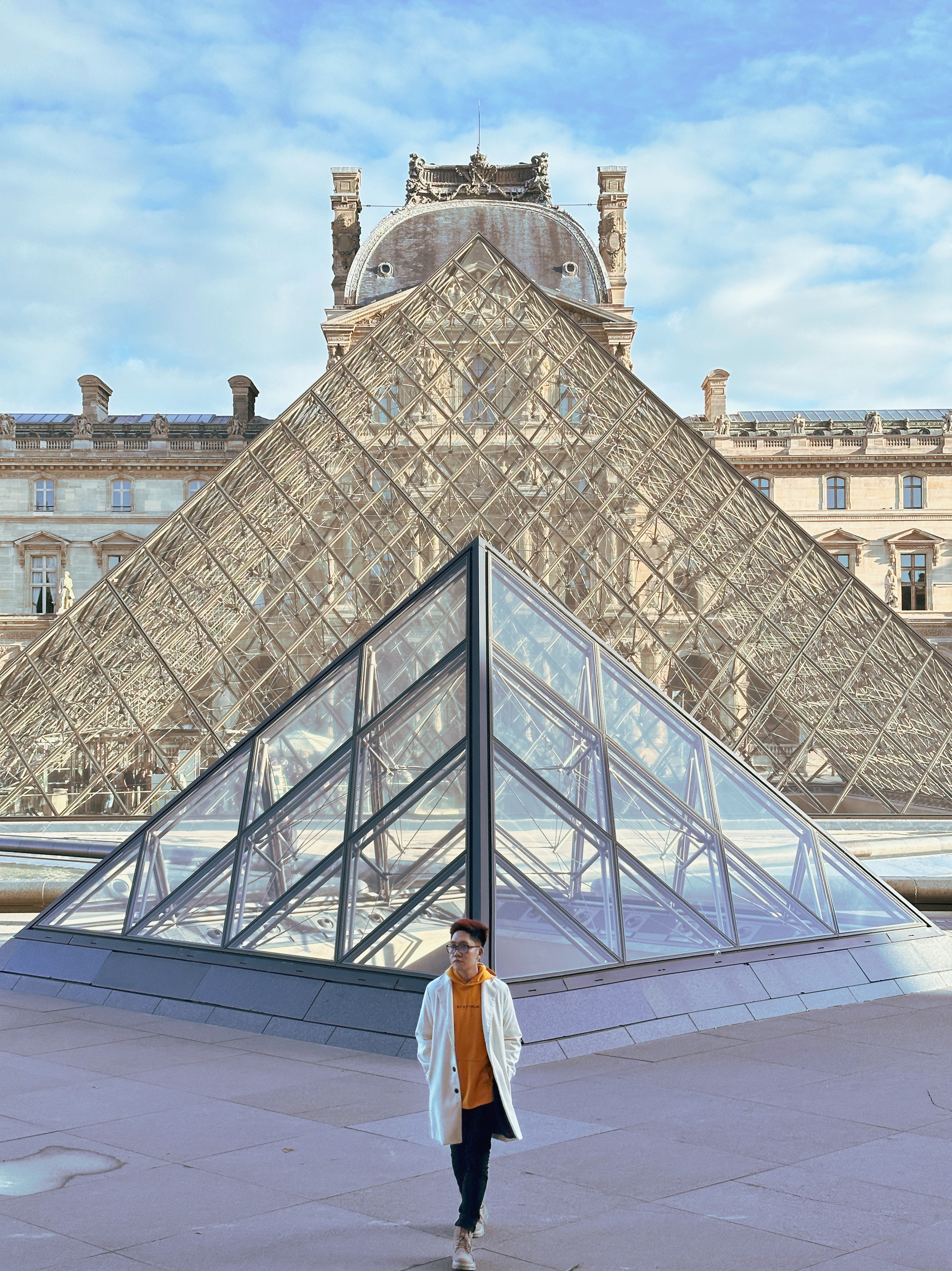Riêng với bảo tàng Louvre thì mình không có mua vé vào xem Monalisa vì mình không đam mê bà cô này. Vậy nên 8 giờ là mình đã có mặt ở cổng Louvre rồi đó, nhưng dù đi sớm cỡ nào thì vẫn đông. Mới 8 giờ thôi mà kha khá người vào đây chụp ảnh rồi. Khuôn viên chỗ kim tự tháp bằng kính thì miễn phí không tốn tiền gì hết. Ở đây có nhiều góc chụp đẹp, có điều lúc nào cũng đông người, nên canh góc cũng hơi khó và cần kiên nhẫn một chút. Còn vào trong bảo tàng thì đi 3-4 tiếng dạo sơ sơ mới hết vì bảo tàng rất rộng. Nên mua vé online trước chứ tới mới mua thì thôi chết trong biển người xếp hàng