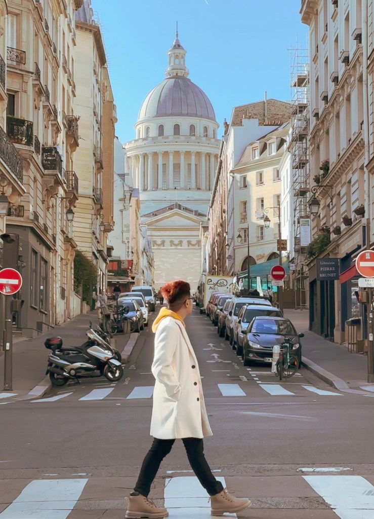 Hai chỗ này gần nhau, nằm ngay quận 5. Có thể xuống trạm Maubert Mutualite, đi mua bánh Croissant rồi qua Pantheon luôn cũng tiện. Đoạn đường tên Rue Vallete có view nhìn ra Pantheon rất đẹp mà chụp lên thì cực kỳ nghệ luôn.
