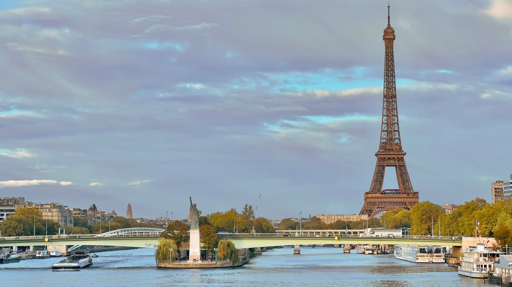 Tượng nữ thần tự do và Tháp Eiffel cùng sông Seine