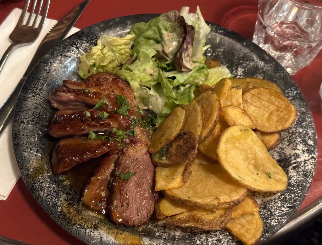 Quán này là quán đắt nhất mình ăn. Một đĩa Duck Confit giá 23 Euros. Nhưng mà ngon, thật sự ngon lắm luôn. Lần đầu mình ăn đùi vịt cắt mà ngon vậy á.
